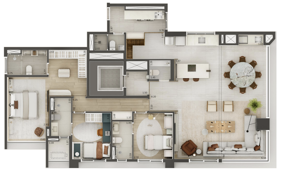 Layout inteligente com aproveitamento total de espaço.
