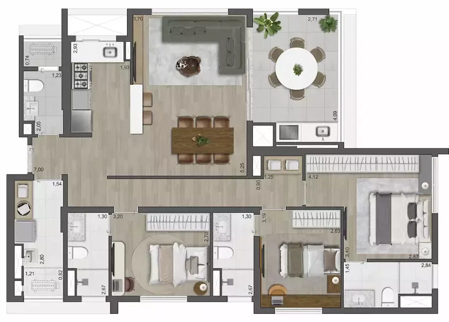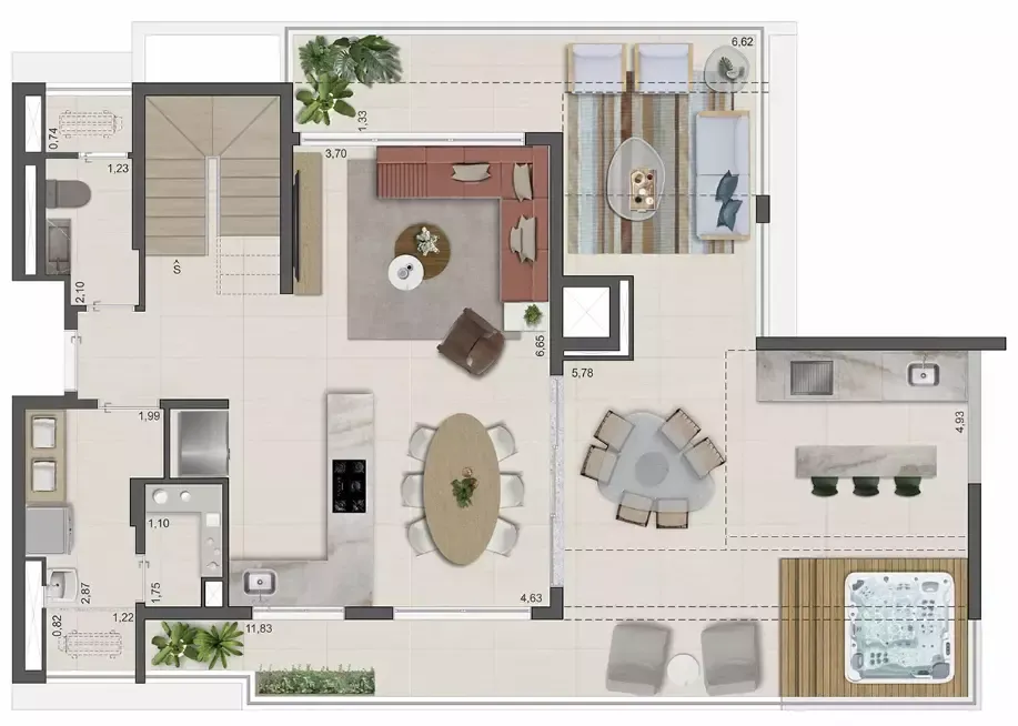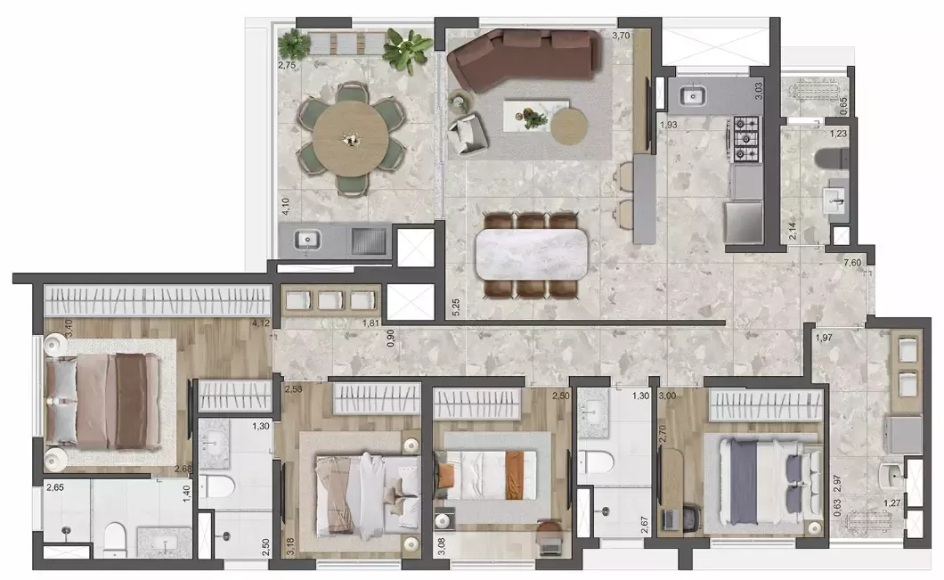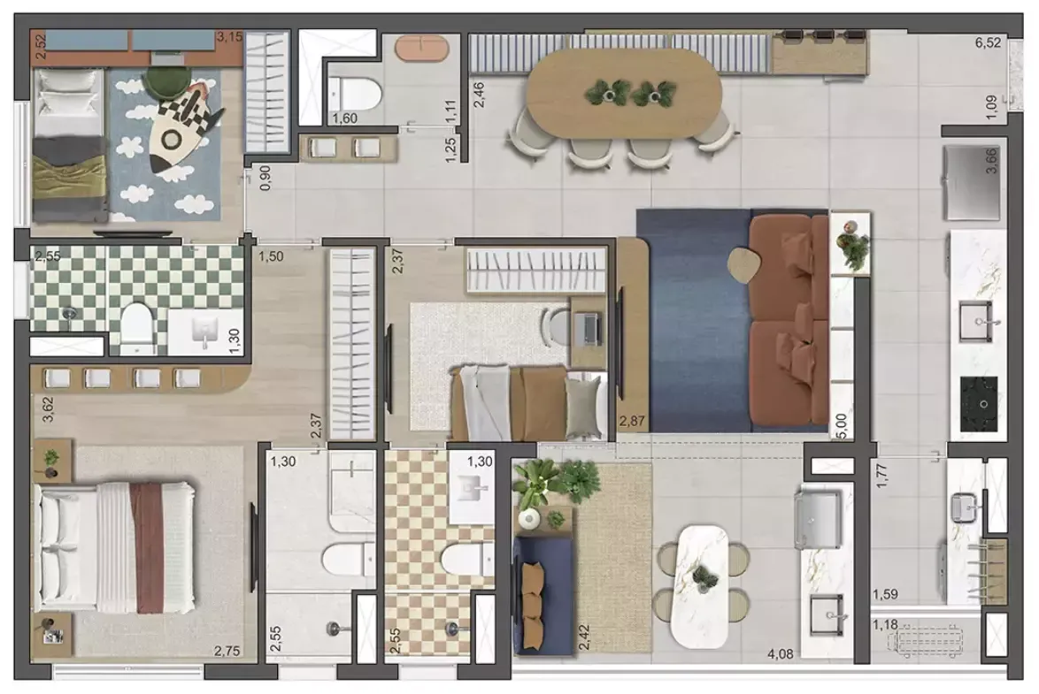 Layout inteligente com aproveitamento total de espaço.