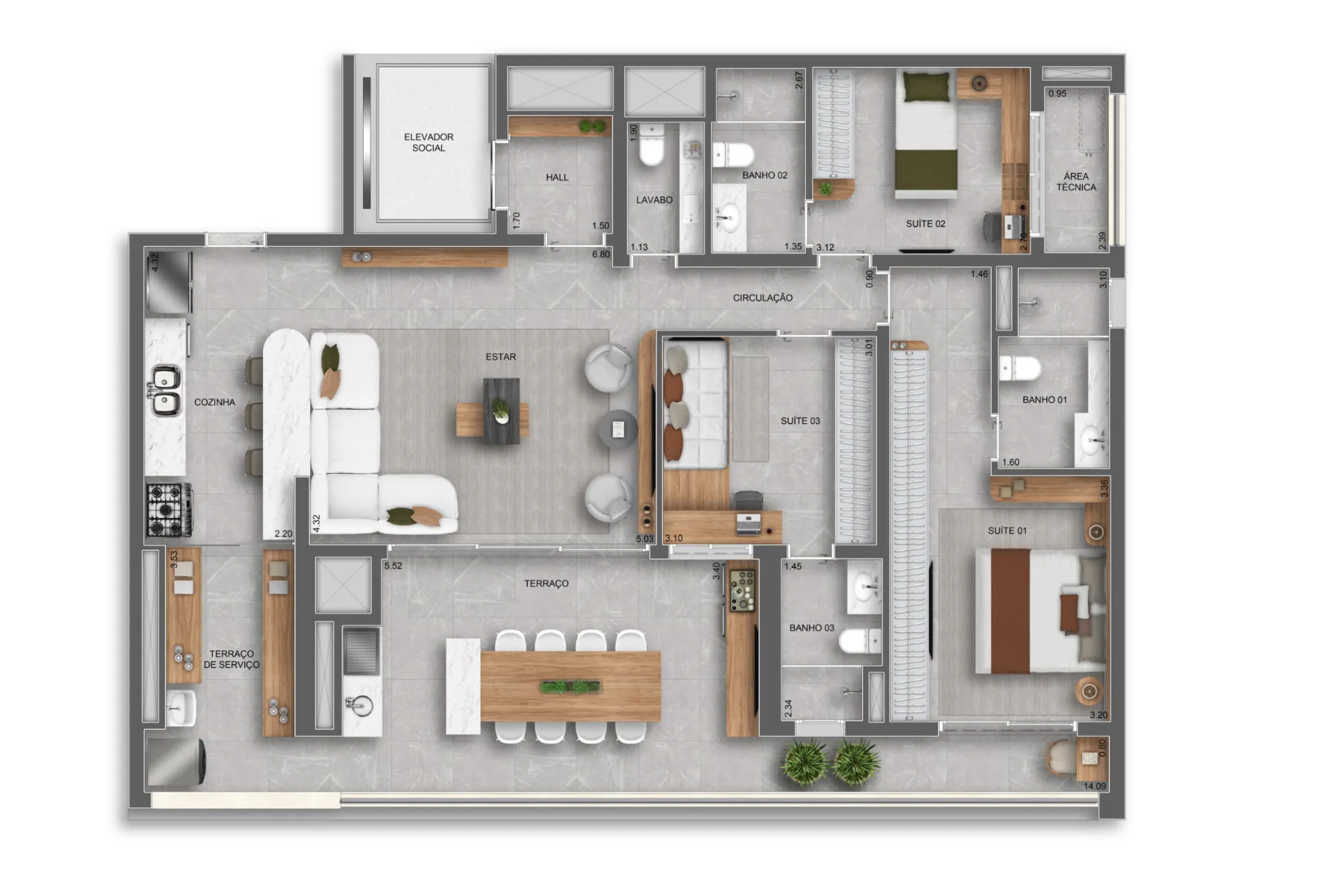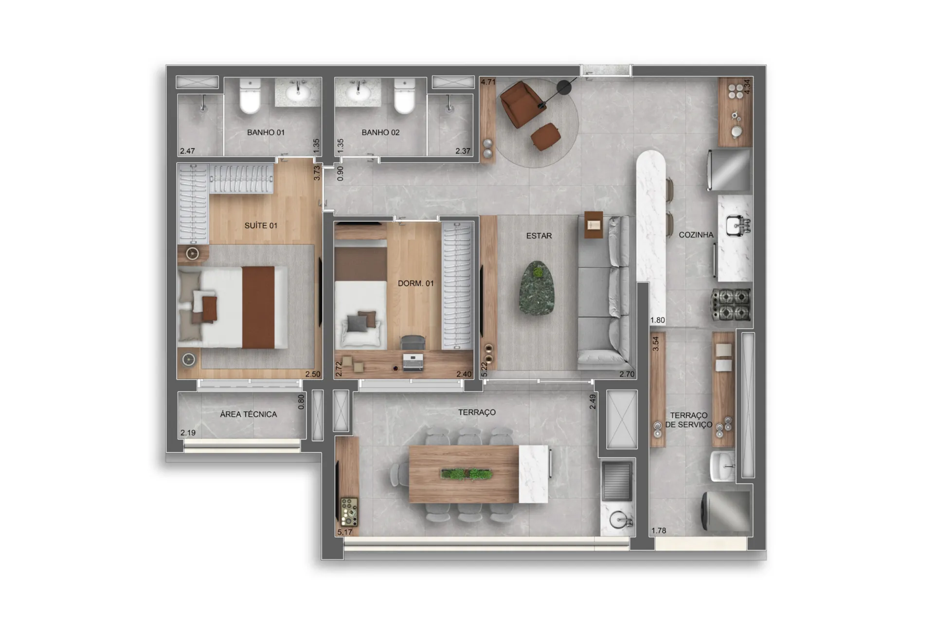 Layout inteligente com aproveitamento total de espaço.
