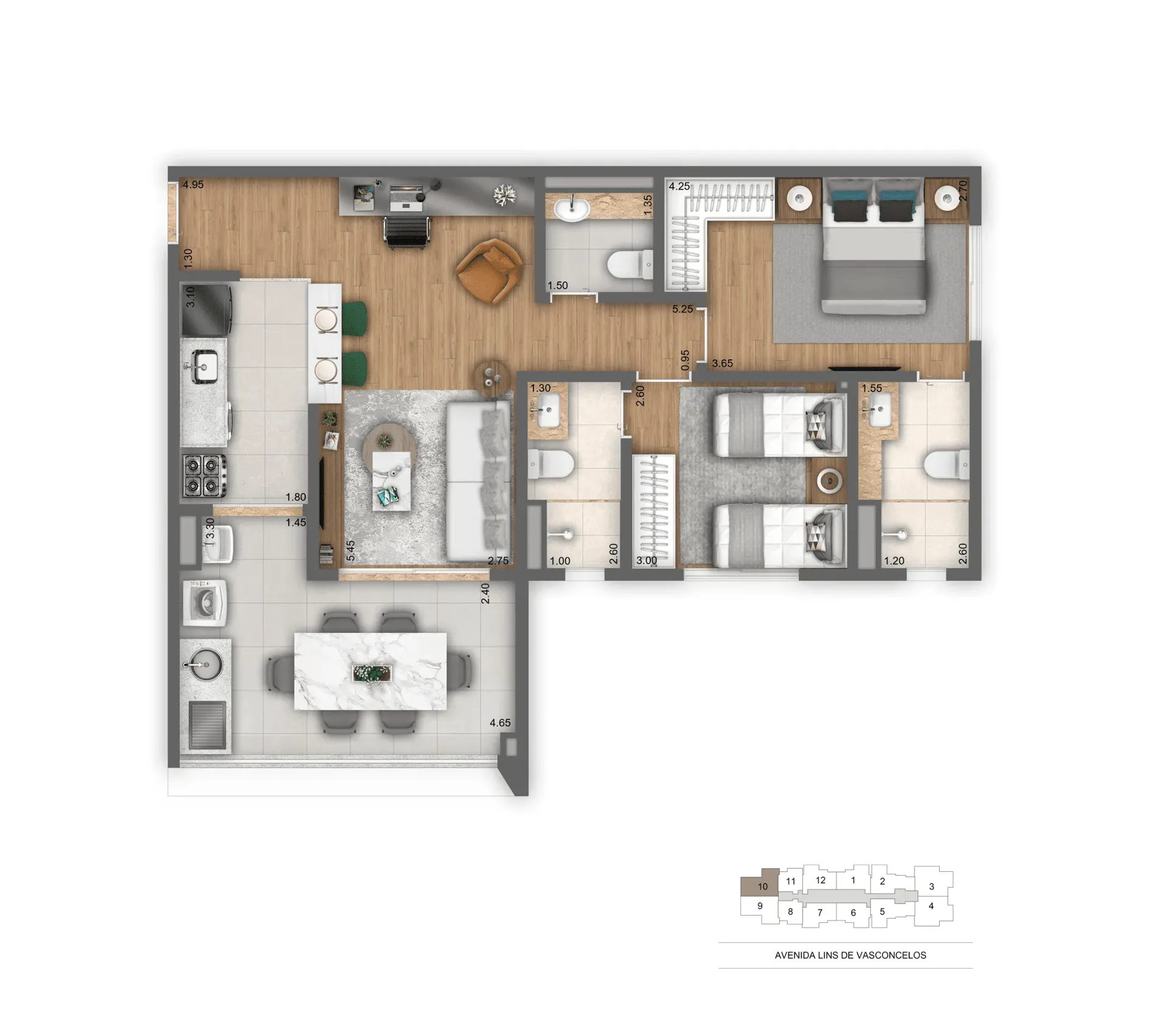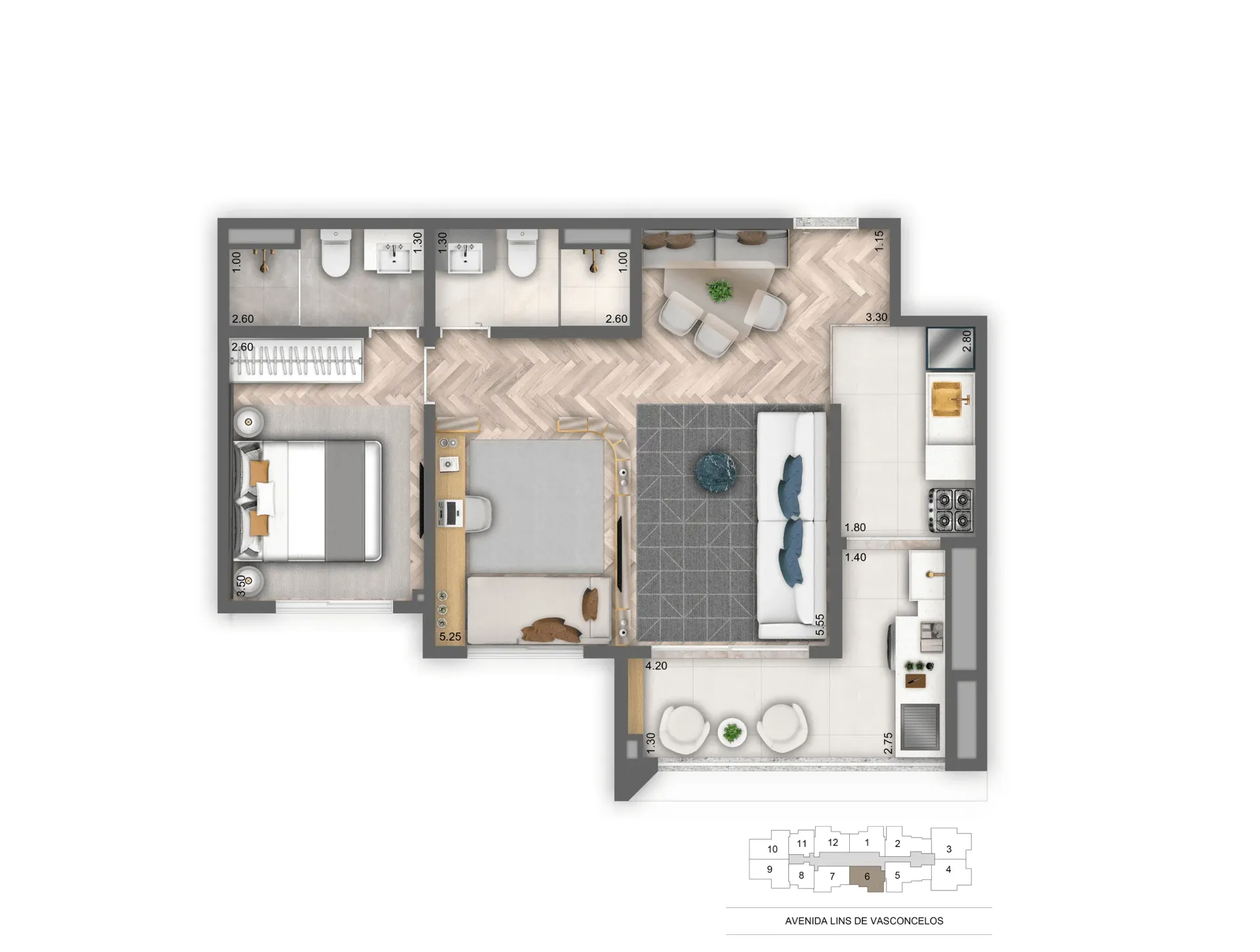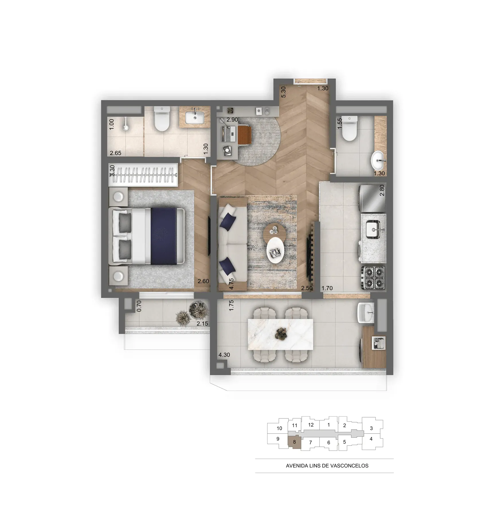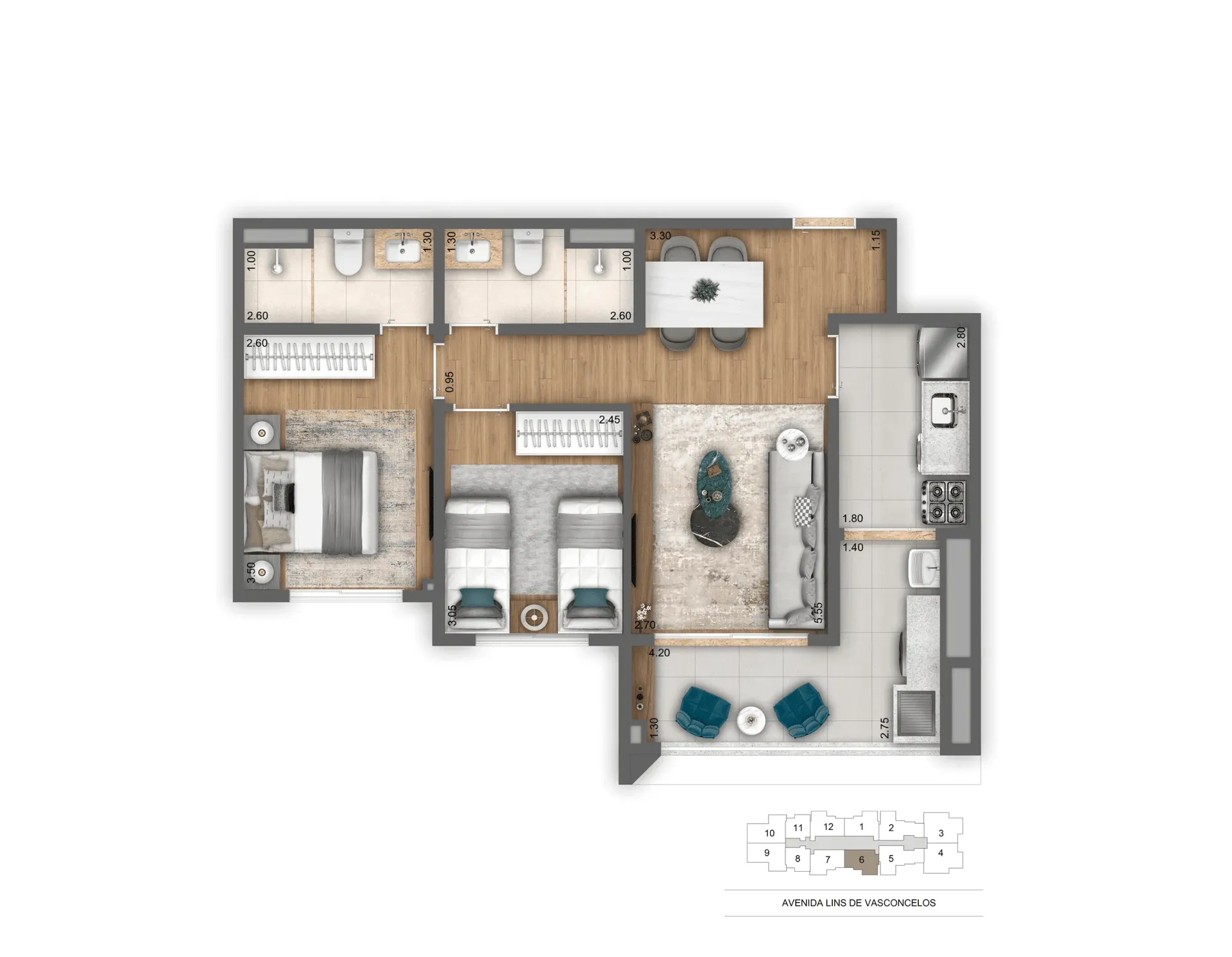 Layout inteligente com aproveitamento total de espaço.