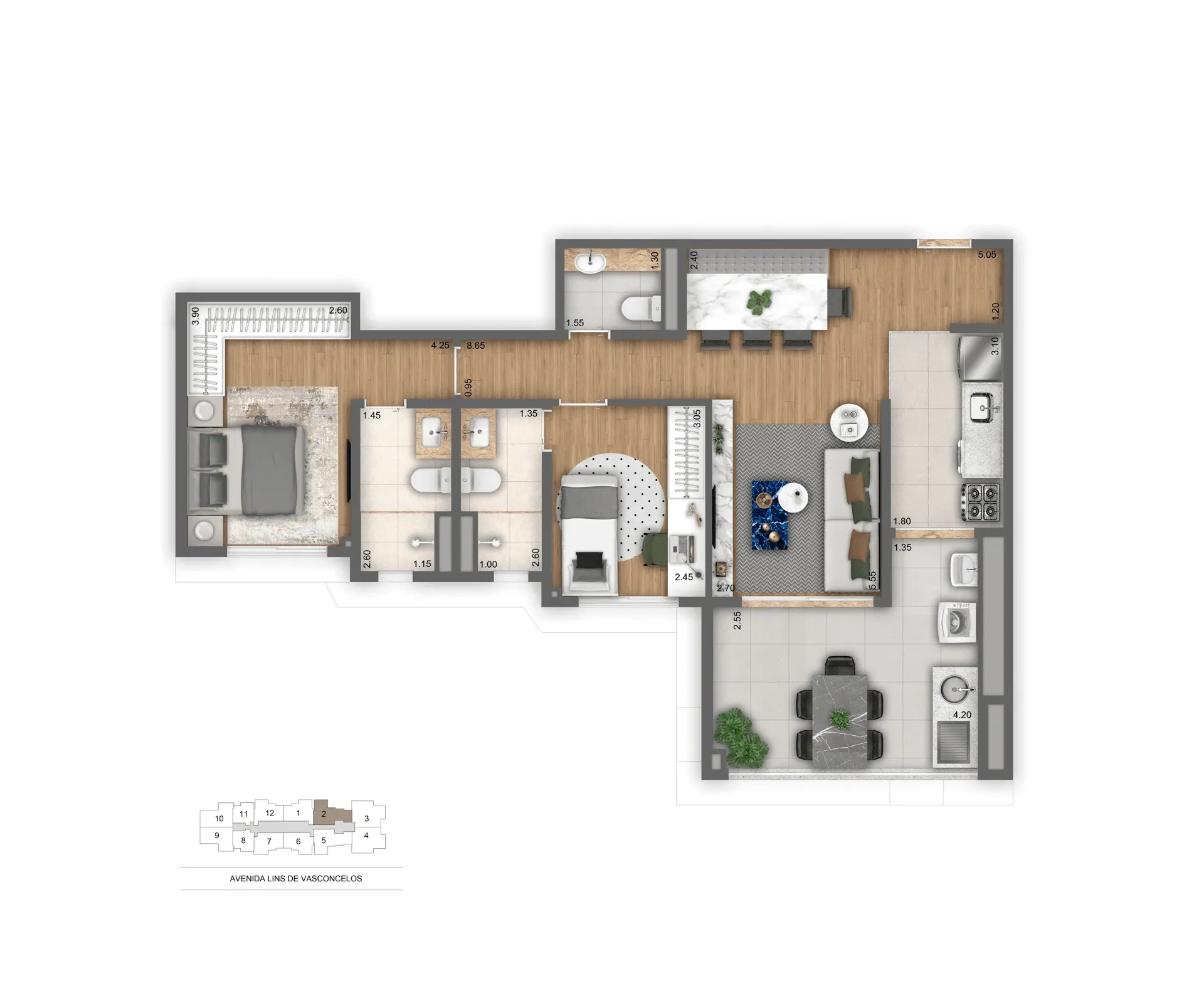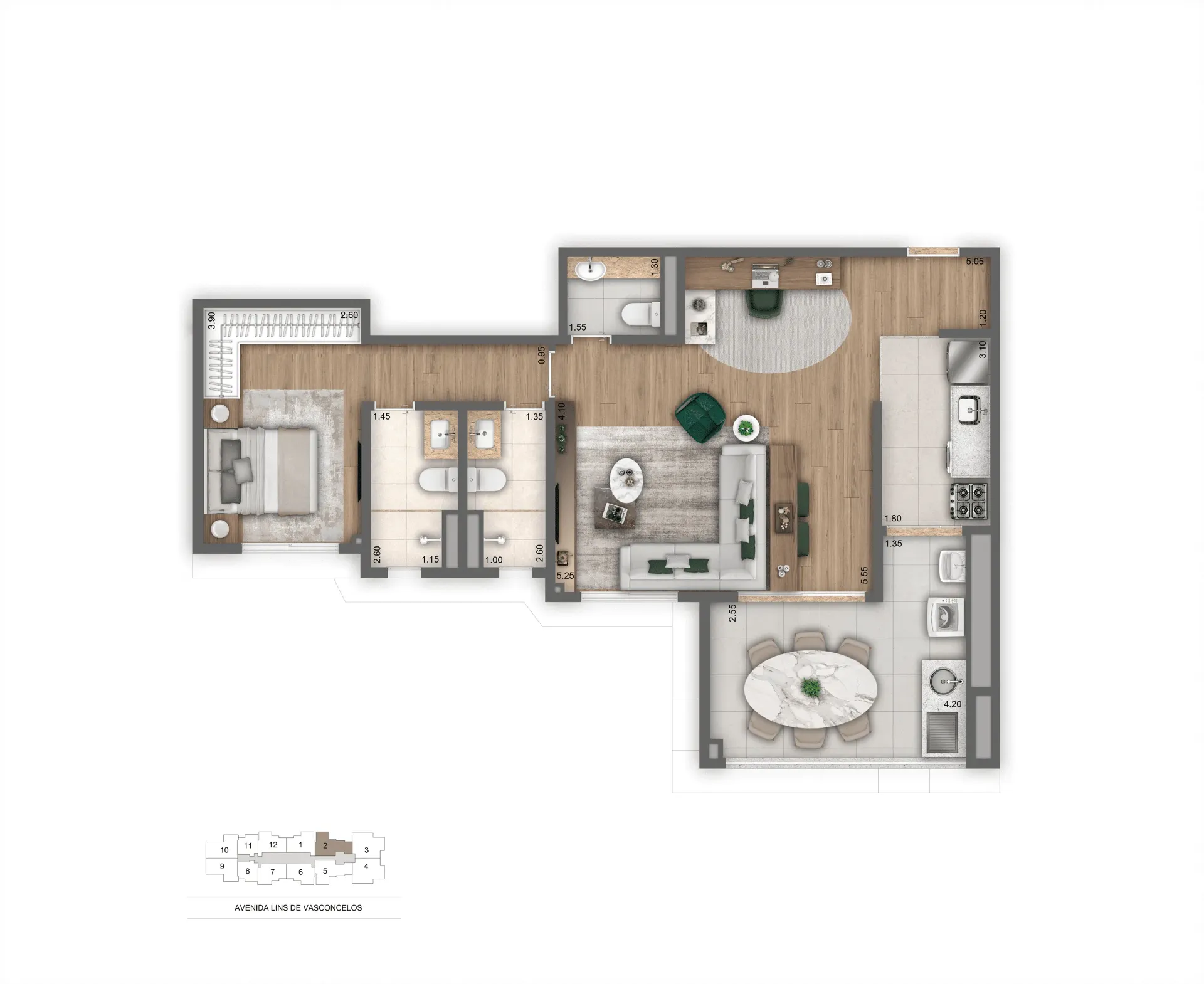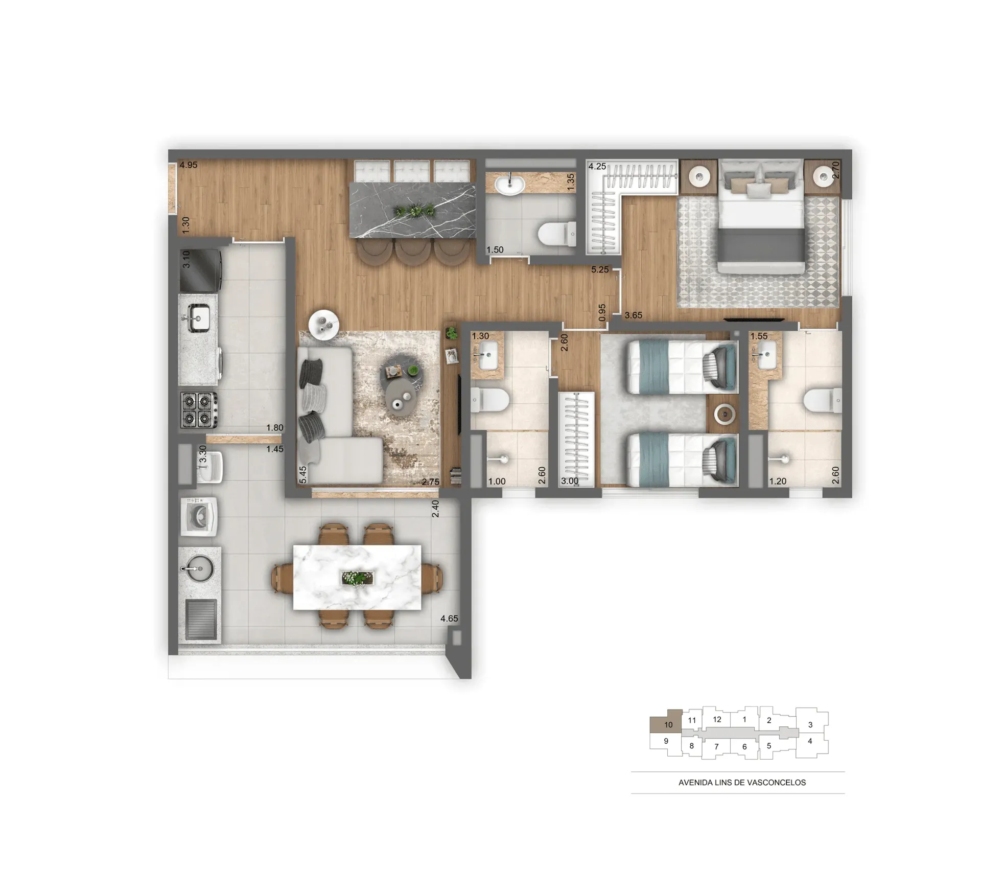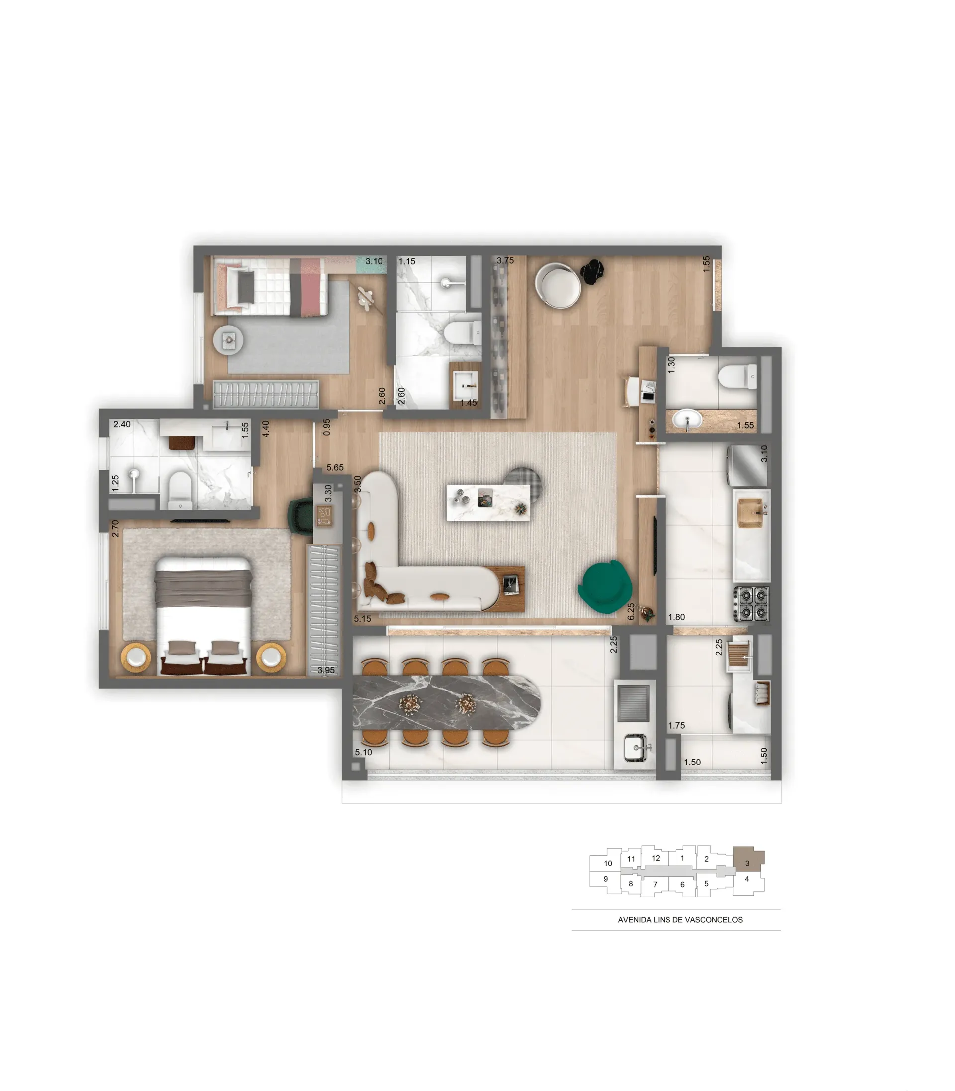 Layout inteligente com aproveitamento total de espaço.