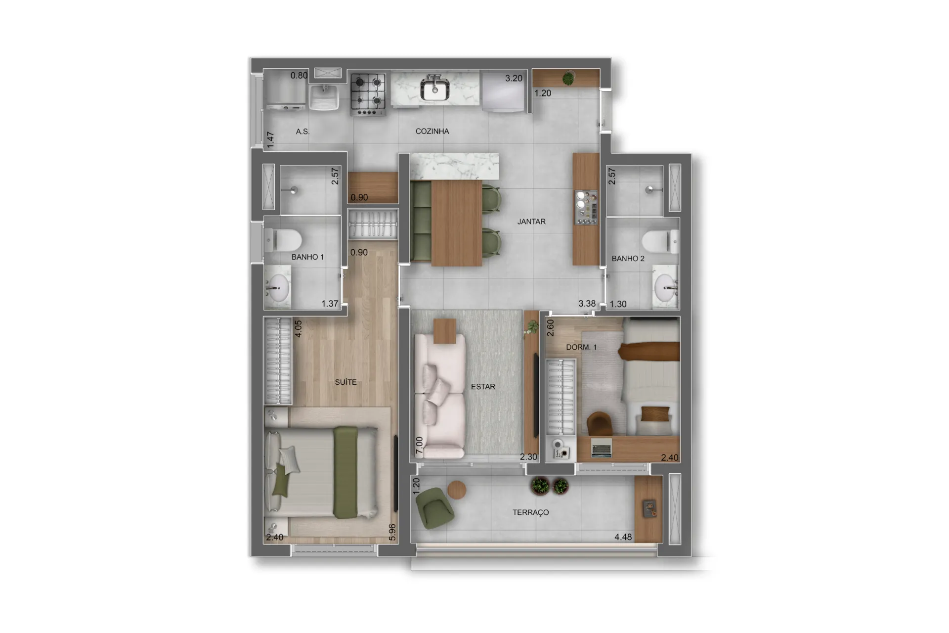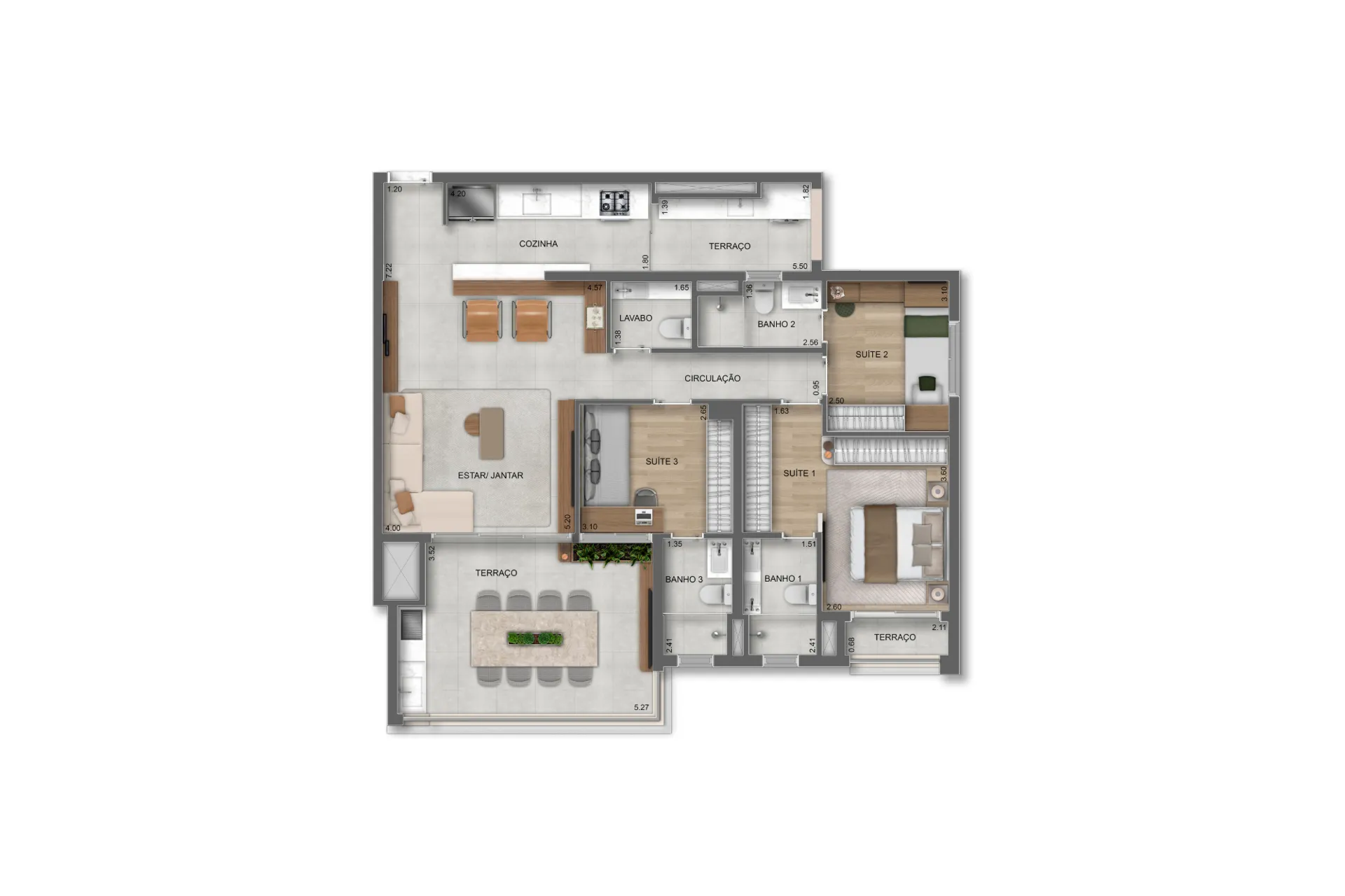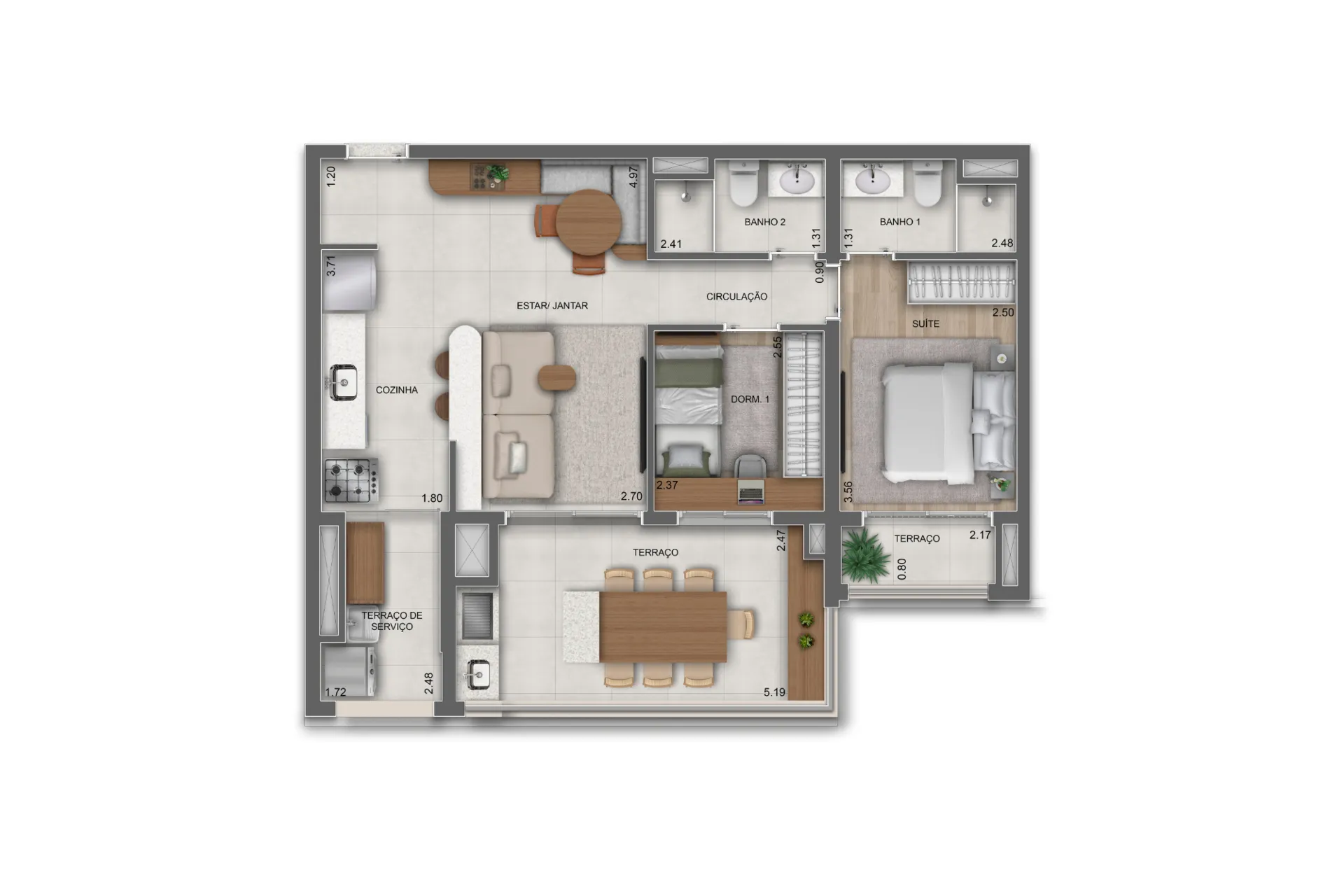 Layout inteligente com aproveitamento total de espaço.