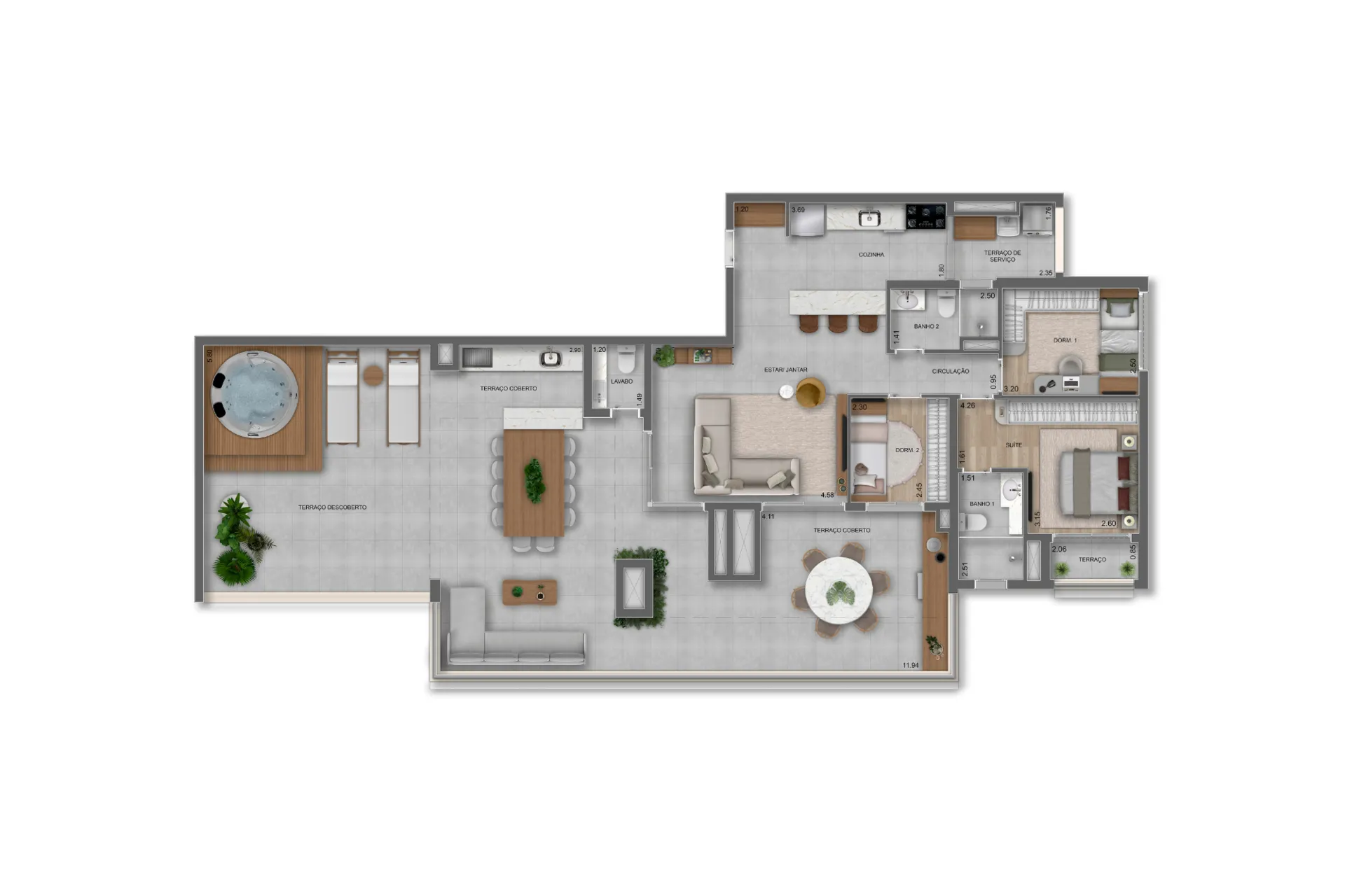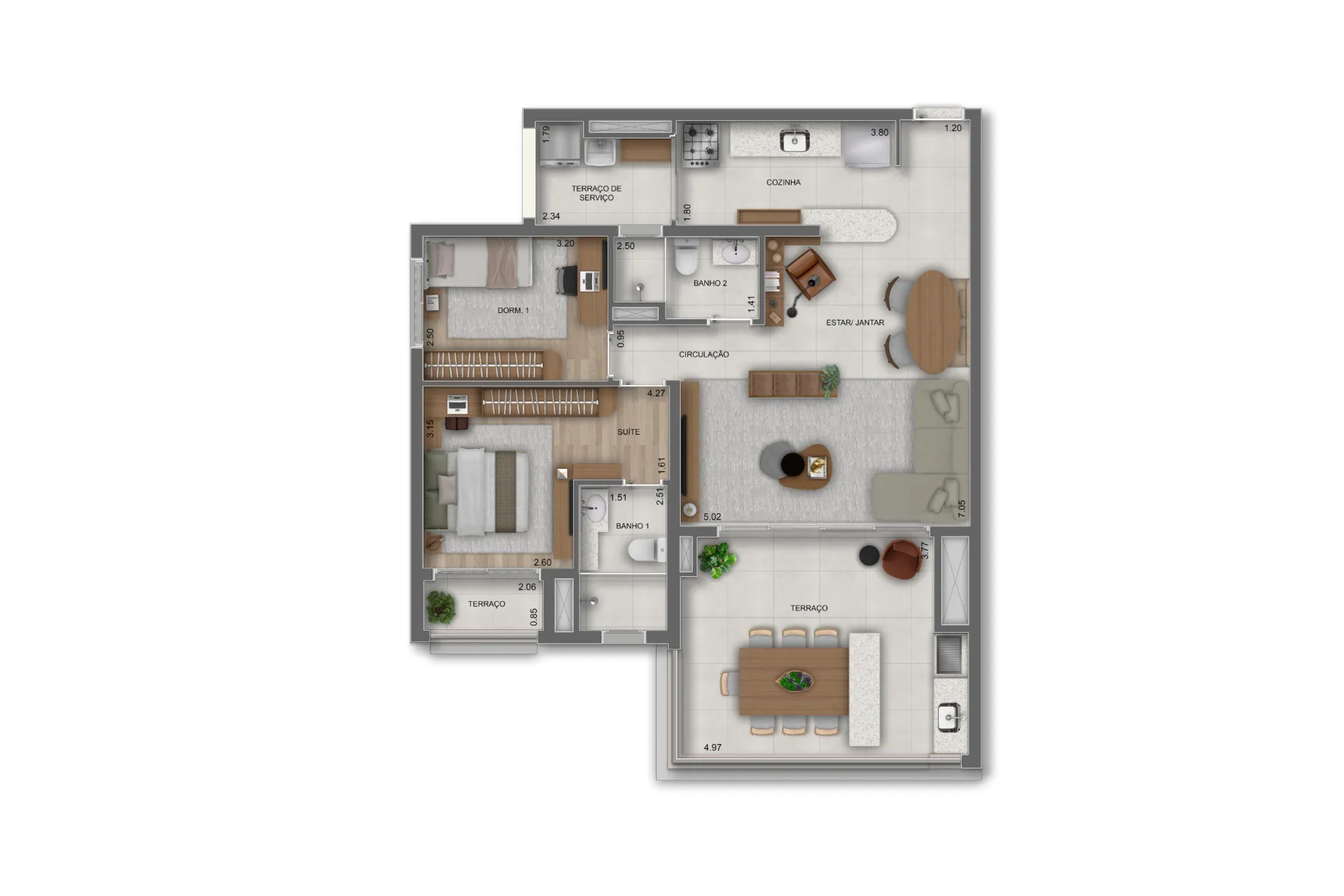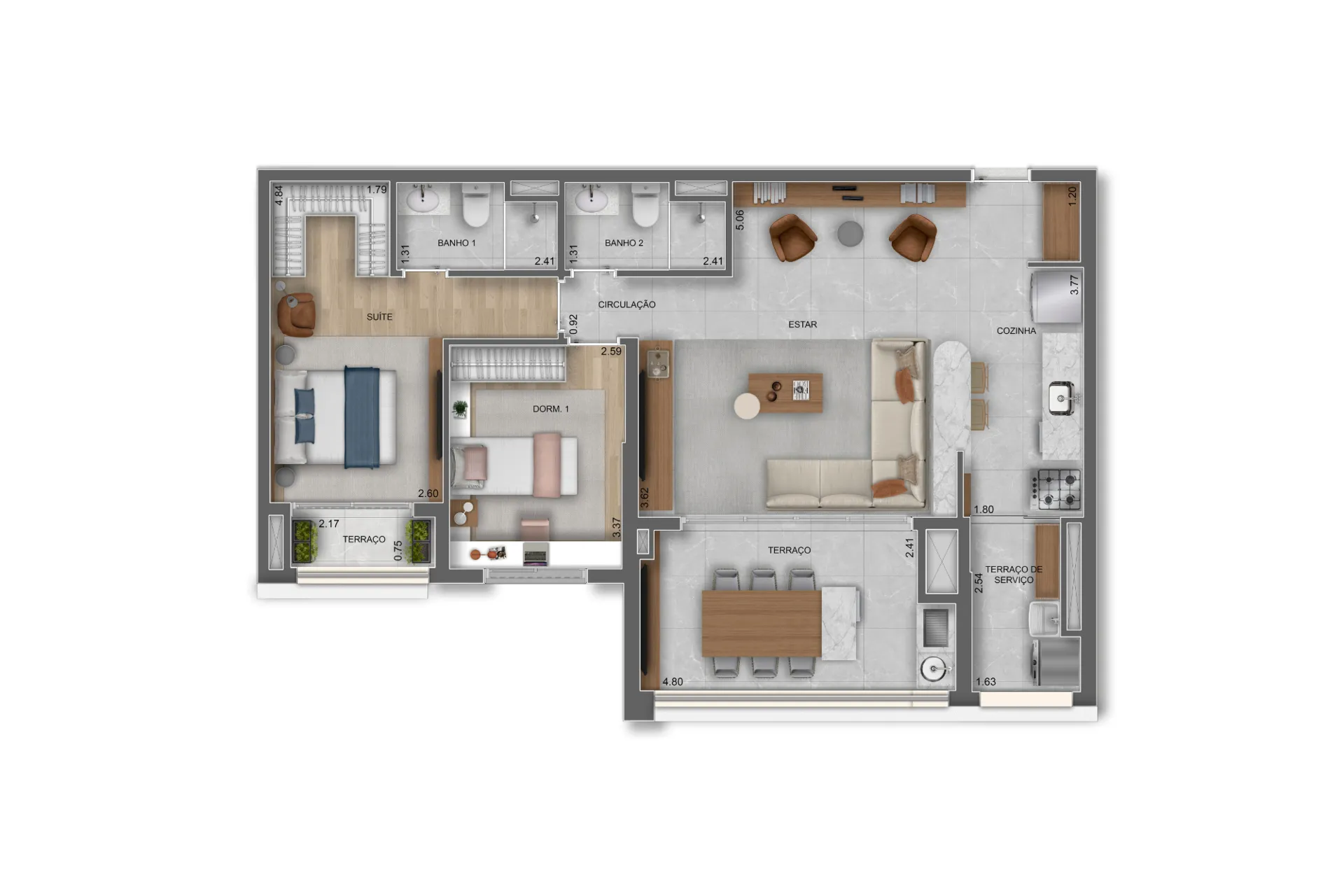 Layout inteligente com aproveitamento total de espaço.